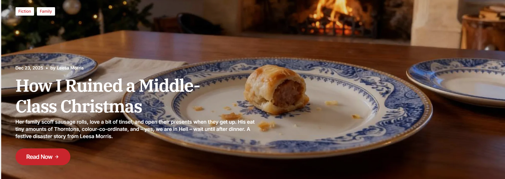 Short fiction All heads swung in my direction. My fiancé’s mother threw a hand to her mouth to stifle a shriek. I found Tom’s face and saw my own horror reflected back at me.There was no getting away from it. I’d ruined Christmas…